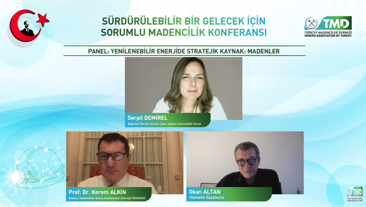 Yenilenebilir Enerji Araştırmaları Derneği (YENADER) Başkanı Prof. Dr. Kerem Alkin ise, “Yenilenebilir Enerjide Stratejik Kaynak: Madenler” paneline katıldı ve “Teknolojik gelişmeler madene daha az ihtiyaç olacağı anlamına gelmiyor. Nikel, çinko ve bakır gibi birçok madenin yenilenebilir enerjide öne çıkan stratejik madenler olduğunu görüyoruz. Maden endüstrisinde kapasite artışına ciddi anlamda ihtiyacımız var” ifadelerini kullandı.
