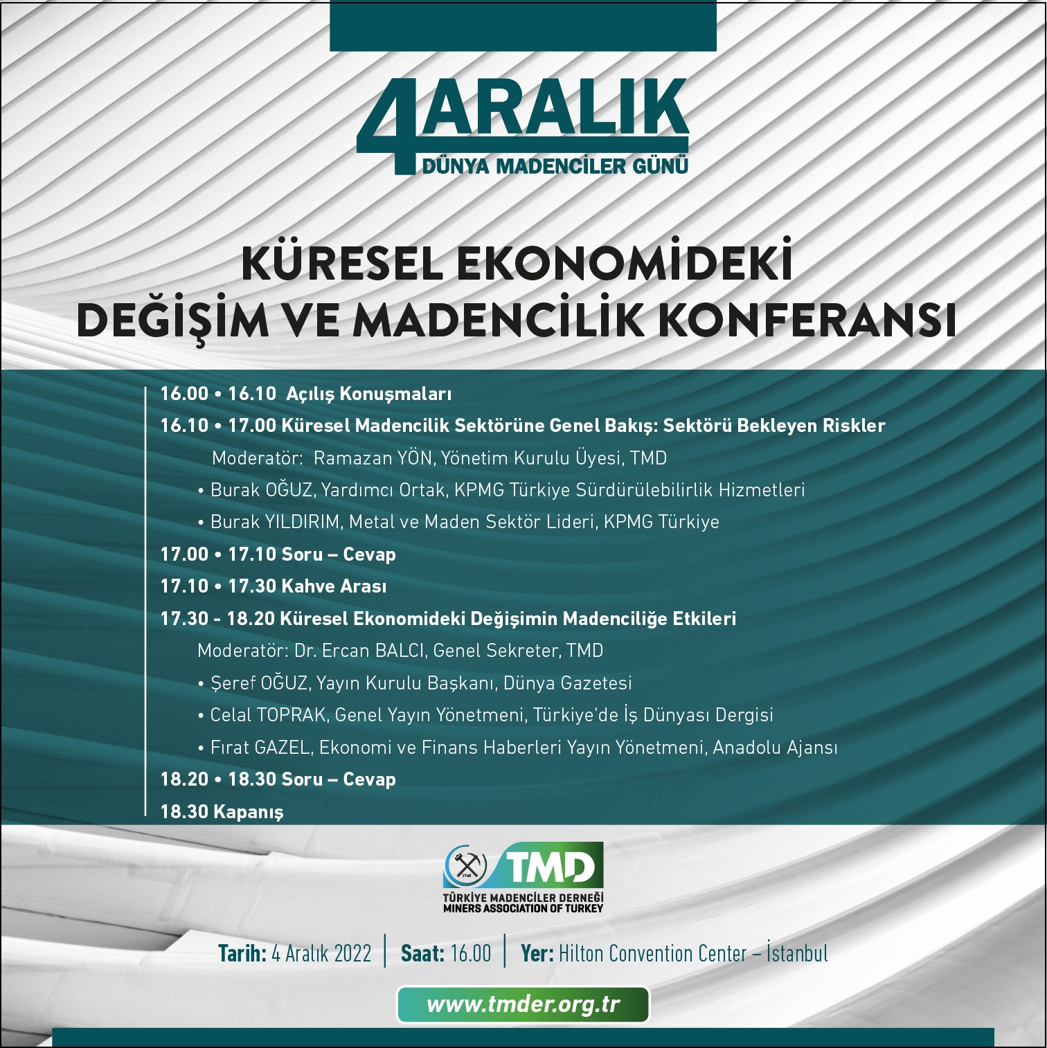 4 Aralık Dünya Madenciler Günü’nü her yıl çeşitli etkinliklerle kutlayan Türkiye Madenciler Derneği, bu yılki etkinliğinin temasını “Küresel Ekonomideki Değişim ve Madencilik” olarak belirledi.