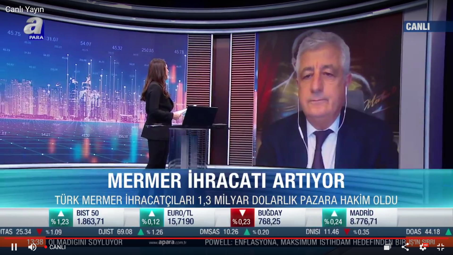 Türkiye Madenciler Derneği (TMD) Yönetim Kurulu Başkanı Ali Emiroğlu, 12 Ocak 2022 tarihinde A Para’da yayınlanan İş’in Sırrı programına katılarak Türkiye’nin 2021 yılı mermer ihracat verileri ile önümüzdeki döneme ilişkin maden ihracat hedeflerini değerlendirdi. 2021 yılında doğal taşlarda yüzde 39’luk bir ihracat artışı gerçekleştiğini belirten Emiroğlu, “Doğal taşta yüzlerce farklı renk ve desen çeşitliliğine sahip olmamız bize uluslararası piyasalarda çok büyük avantajlar sağlıyor” dedi.