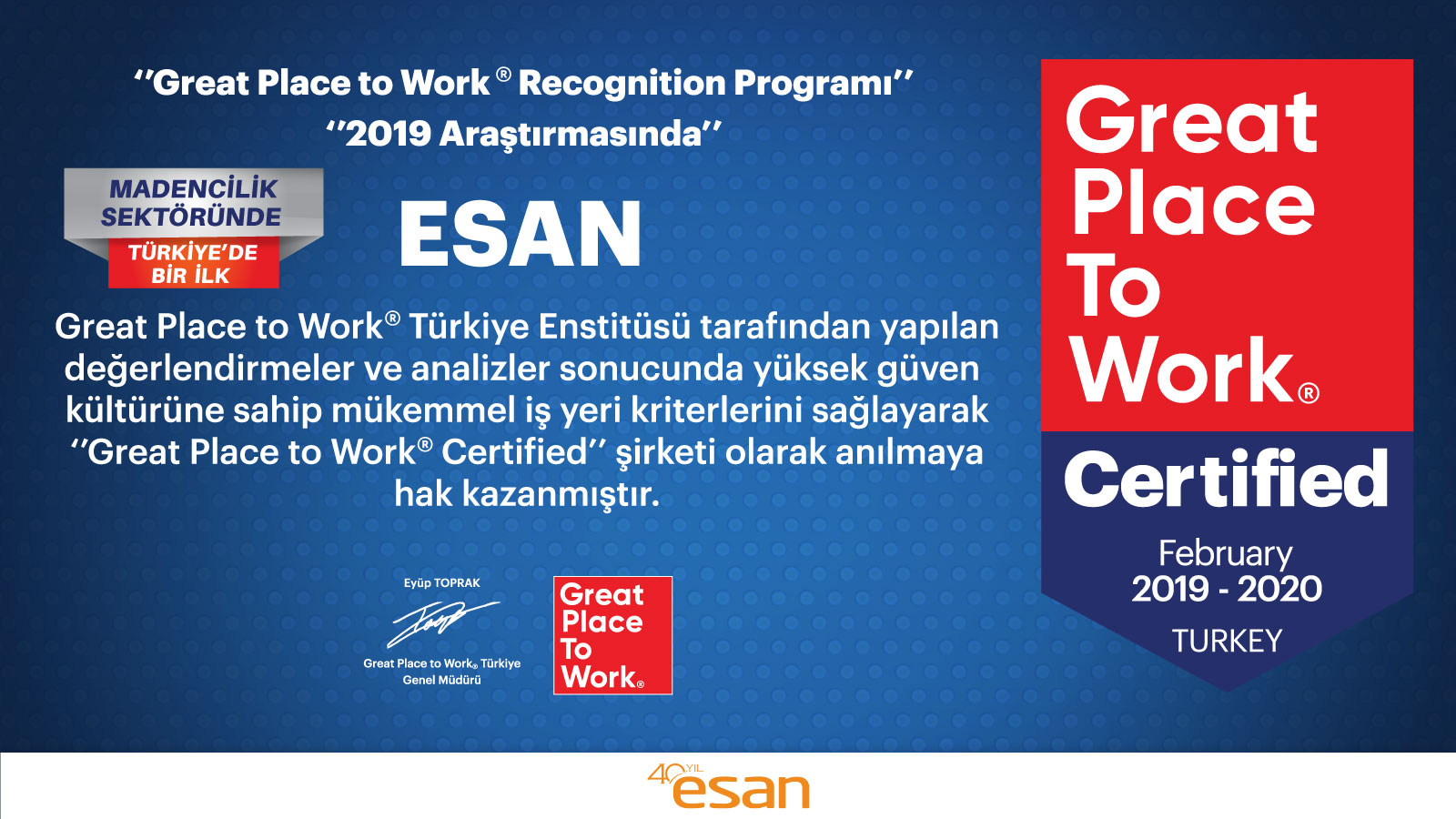 yapan Great Place to Work Enstitüsü’nün 2018 araştırmasına göre Esan, “Great