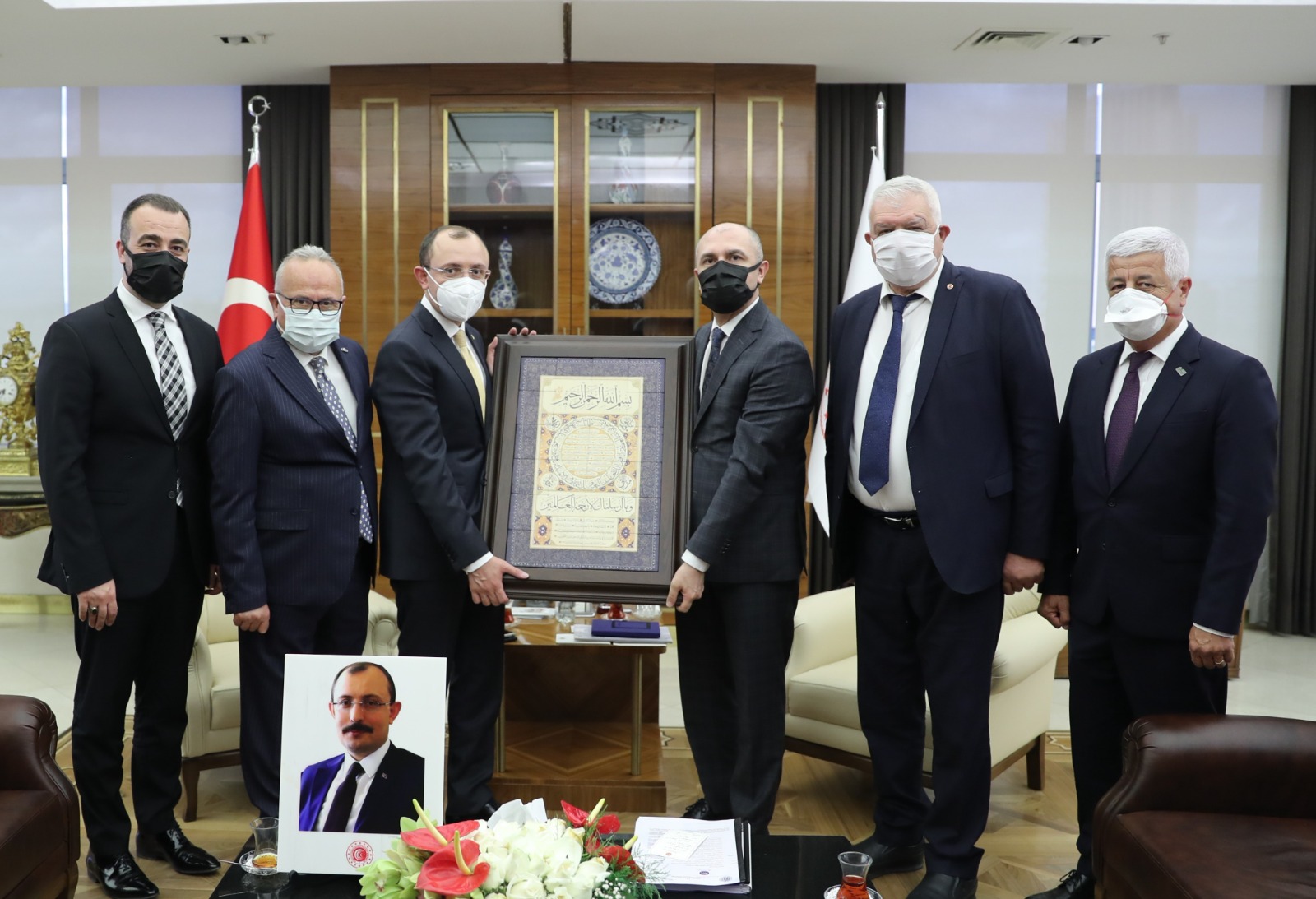 İstanbul Maden İhracatçıları Birliği (İMİB) Yönetim Kurulu Başkanı Aydın Dinçer, Ege Maden İhracatçıları Birliği Yönetim Kurulu Başkanı Mevlüt Kaya, Türkiye Mermer Doğal Taş ve Makinaları Üreticileri Birliği (TÜMMER) Yönetim Kurulu Başkanı İbrahim Alimoğlu, Türkiye Madenciler Derneği (TMD) Yönetim Kurulu Başkanı Ali Emiroğlu ve TÜMMER Yönetim Kurulu Üyesi Mehmet Serter’den oluşan Maden Platformu temsilcileri Ticaret Bakanı Dr. Mehmet Muş’a nezaket ziyaretinde bulundu.