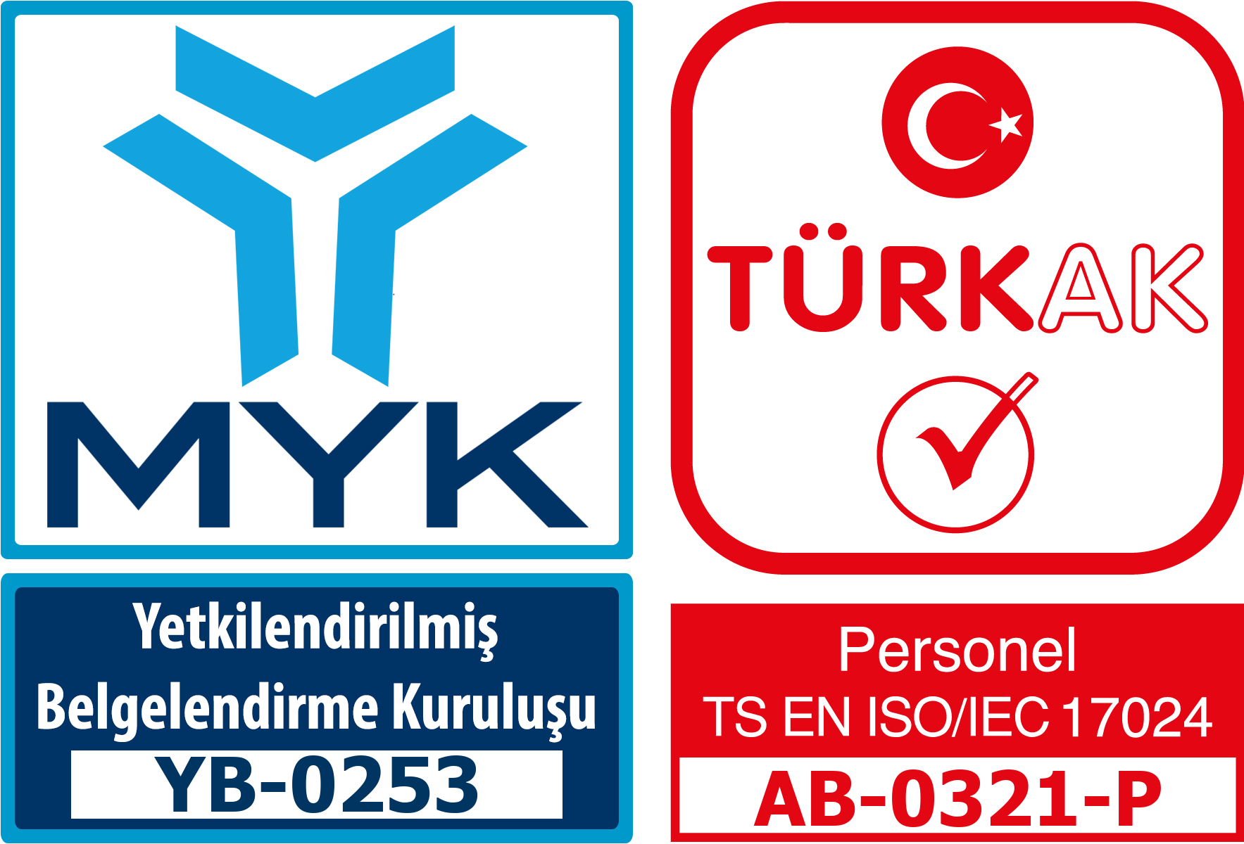 TÜRKAK tarafından AB-0321-P Akreditasyon Numarası ile akredite edilmiş olan Derneğimiz, MYK Yönetim Kurulunun 19.08.2020 tarihli ve 2020/96 sayılı kararı ile sınav ve belgelendirme yapmak üzere 3 ulusal yeterlilikte yetkilendirilmiştir.
